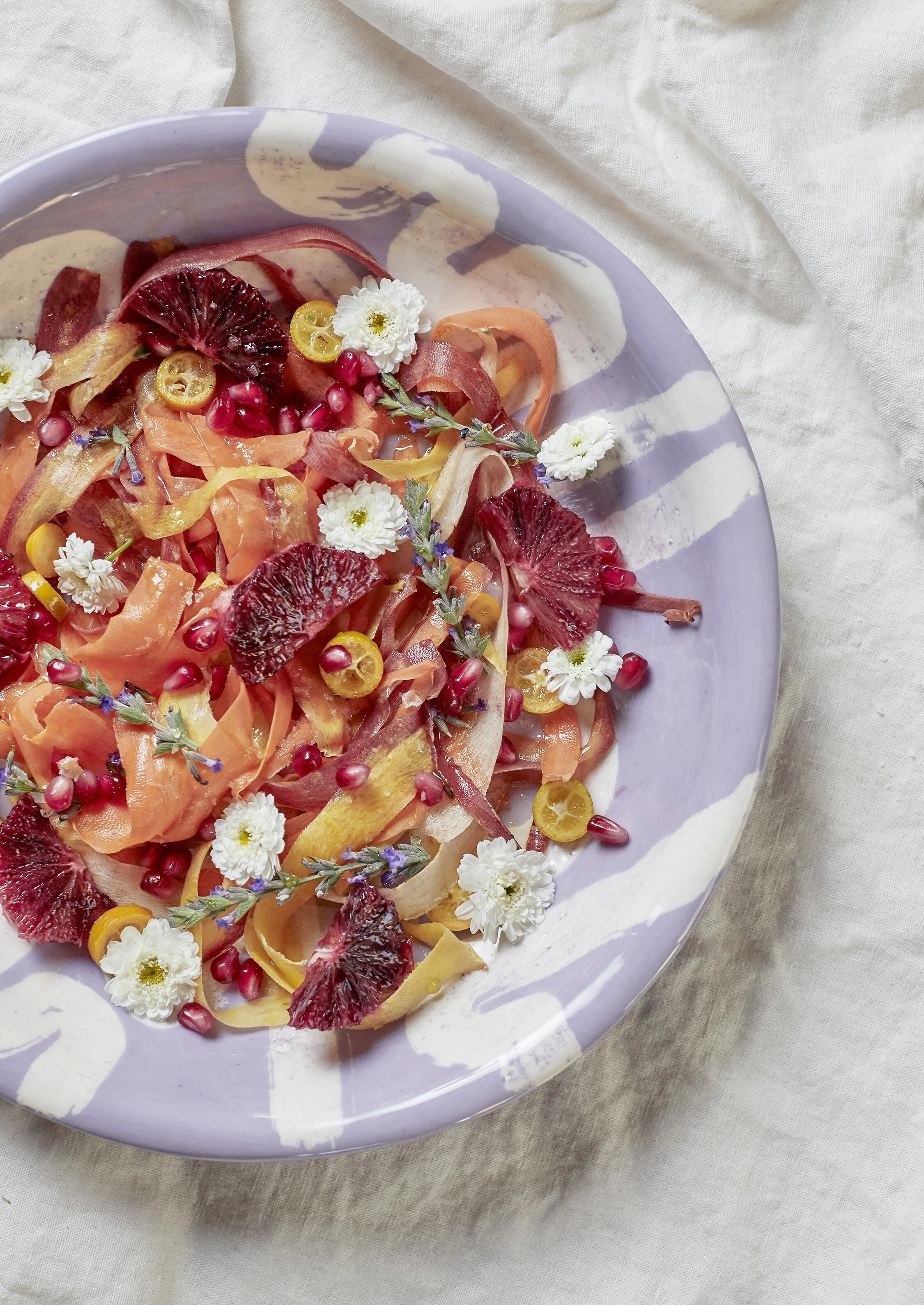 The prettiest carrot salad you ever did see. Photo by me, Jenna Peffley, plate by Lux Eros and produce courtesy of The Hollywood Farmer’s Market